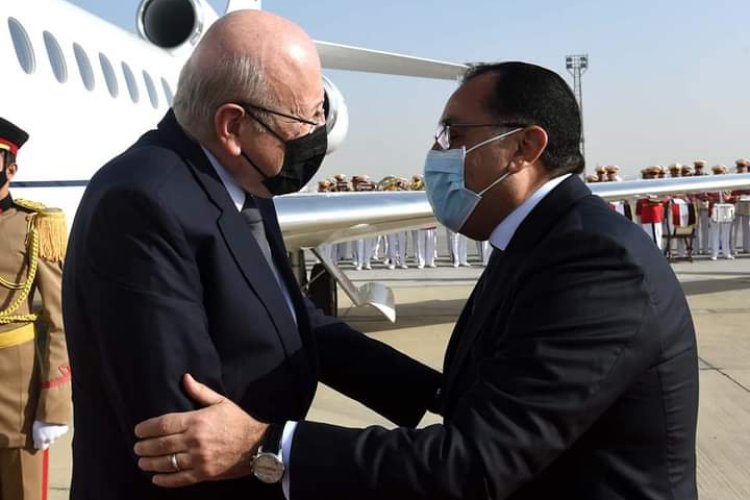 رئيس الوزراء يستقبل رئيس الحكومة اللبنانية بمطار القاهرة